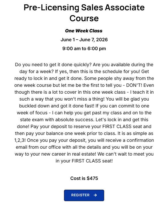 ONE WEEK CLASS June 2026
